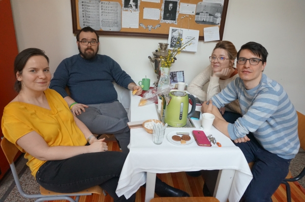 A Ruszisztikai Központ folyosóján flash mob-szerű teaház állta el minden direkt arra járó és véletlenül odakeveredő ember útját – ami szerencsére senkinek nem volt ellenére. Bakelit lemezekről szólt Okudzsava, Alla Pugacsova, Zsanna Bicsevszkaja, az Akvárium és más ikonikus orosz és szovjet dallamok. Folyt a társalgás és a tea, fogyott a sütemény és a pirog maradéka. Sok születésnapi köszöntés érkezett a vendégektől, további sikeres évtizedeket kívántak a kabinetnek és reményüket fejezték ki, hogy jövőre is lesz születésnapi buli.
