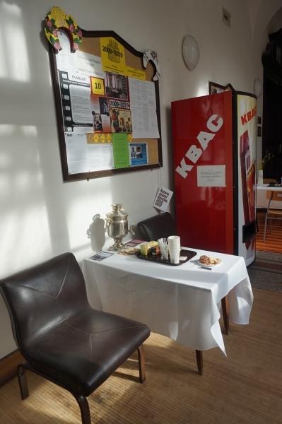 A Ruszisztikai Központ folyosóján flash mob-szerű teaház állta el minden direkt arra járó és véletlenül odakeveredő ember útját – ami szerencsére senkinek nem volt ellenére. Bakelit lemezekről szólt Okudzsava, Alla Pugacsova, Zsanna Bicsevszkaja, az Akvárium és más ikonikus orosz és szovjet dallamok. Folyt a társalgás és a tea, fogyott a sütemény és a pirog maradéka. Sok születésnapi köszöntés érkezett a vendégektől, további sikeres évtizedeket kívántak a kabinetnek és reményüket fejezték ki, hogy jövőre is lesz születésnapi buli.