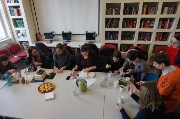 A híres orosz vendégszeretet hagyományait követve, 2019. február 25-én, pontban a kabinet megnyitásának 10. évfordulóján bölcsészkar-szerte elébe mentünk a potenciális vendégeknek, és piroggal és ajándékkártyákkal kedveskedtünk nekik.
