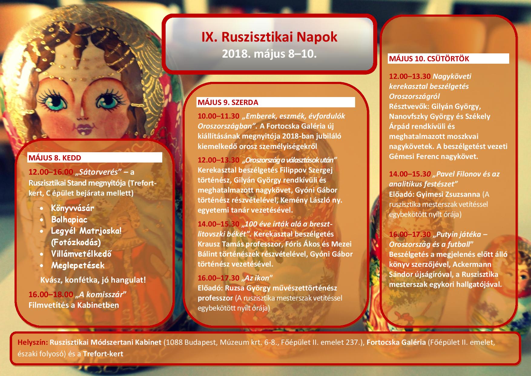 Május 8–10. között kilencedik alkalommal kerülnek megrendezésre a Ruszisztikai Napok az ELTE Bölcsész Napok keretein belül. Mindenkit szeretettel várunk valamennyi programra!
