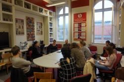 Pavelka Sára a két színház együttműködésének minden szintjét profin ismeri, a közös előadás kiválasztásától egészen a vámudvaron dekkoló díszletek kiszabadításáig. Kompetensen és izgalmasan beszélt a munka különböző fázisairól, nehézségeiről és örömeiről. Vázolta annak a lehetőségét, hogyan tudnának a ruszisztika mesterszakos hallgatók gyakornokként bekapcsolódni a kulturális szervező-tervező munkába. Mindez pedig történt 2017. november 29-én 10 órakor a Ruszisztikai Módszertani Kabinetben.