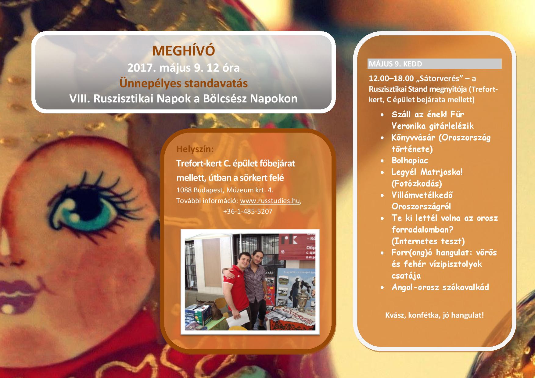 2017. május 9-én, a Győzelem Napján nyílik a Ruszisztikai Központ standja a Trefort-kertben, a Bölcsész Napok fiókrendezvényén, a VIII. Ruszisztikai Napokon.