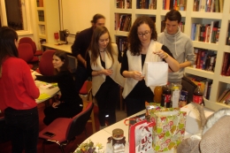 Majdnem hógolyókkal búcsúztatták az őszi szemesztert a ruszisztika mesterszak hallgatói és oktatói a Ruszisztikai Kabinetben, 2016. december 14-én.
