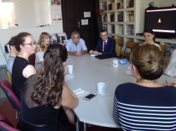 A ruszisztika mesterképzés hallgatói sokakat foglalkoztató kérdést tettek fel Gémesi Ferencnek: mi lesz a Balassi Intézet sorsa és a jövőben, könnyebb lesz-e az oroszországi ösztöndíjakat megpályázni. Gémesi úr a Balassi Intézet ügyében nem tudott konkrétumot mondani, de véleménye szerint ez egy olyan állami intézmény, amelynek a munkája – ha más szervezeti formában is – elengedhetetlen, többek között a magyar–orosz kulturális kapcsolatok origója, és felsőoktatási szempontból is lényeges szerepet tölt be. A Ruszisztikai Élménynapok meghívott vendége kiemelte, hogy az ösztöndíjak általában nem az egyetemek közti együttműködési szándék hiányán buknak el, hanem azon, hogy sok ösztöndíjas program irreálisan sok utánajárást igényel, könnyen ki lehet csúszni a megadott határidőkből. Gémesi úr is elismételte az örökzöld jó tanácsot, amit jobb, ha mindenki megfogad: a pályázást időben kell elkezdeni, figyelni kell a különböző pályázati lehetőségek sajátos kritériumaira és rendszeresen utána kell járni az új pályázatoknak, hiszen a kínálkozó esélyeket minden egyetemistának egyénileg kell kihasználni.