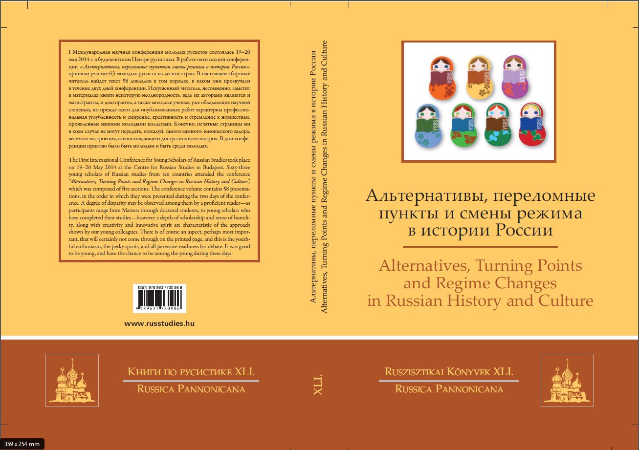 Альтернативы, переломные пункты и смены режима в истории России / Alternatives, Turning Points and Regime Changes in Russian History. Ruszisztikai Könyvek XLI. Budapest, Russica Pannonicana, 2015. Főszerkesztő: Dr. Szvák Gyula, szerkesztők: Filippov Szergej, Gyimesi Zsuzsanna. 588 oldal.