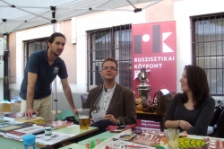 A Ruszisztikai Központ tarka kiadvány-palettája mellett mindenki szeme láttára készült a Vörös téren található Vaszilij Blazsennij székesegyház lepedőnyi másolata, a Trefort-kertben, a központ standján, Doktor Stella Barbara első éves ruszisztika mesterszakos hallgató irányításával.