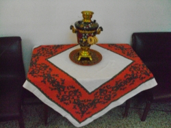 Az elmúlt néhány év alatt a Ruszisztikai Központ munkatársai kifejezetten megszerették ezt a rendezvényt. Mindig kellemes izgatottság kíséri a készülődést. Minden előadó meglepi előadótársait a témájával, sőt, egy kicsit talán önmagát is. Tavasszal dől el véglegesen, hogy mi legyen a tematikus sorvezető, de már szeptember utolsó péntekén mindenkinek elkezd egy kicsit járni az agya azon, hogy vajon mivel lenne jó folytatni a sort egy év múlva. 2011-ben az előadások tabutrémákról szóltak – amiről nem szabad beszélni; 2012-ben tévhitekről – amiről tévesen szoktunk beszélni; 2013-ban hazugságokról – amiről szándékosan torzítva szokás szólni; 2014-ben pedig a humorról – ez olyan dolgokat is elmondhatóvá tesz, amikről egyébként nem, vagy legalábbis nem érthetően lehet szólni. (Az előadásokról részletesebben) A Kutatók Éjszakáját a Ruszisztikai Központban hagyományosan kiállítás megnyitóval szoktuk indítani. Idén ez kicsit rendhagyó módon zajlott. Nem készült új kiállítás, hanem a Fortocska Galéria eddigi 11 kiállításából még fellelhető anyagokból kerültek ki szemelvények a folyosóra. A Mihail Lermontov képzőművészeti hagyatékát bemutató kiállítás maradt a főhelyen, hiszen épp most, október 15-én lesz Lermontov 200. születésnapja. Ezt kiegészítendő tiszavirág életű– mintegy tíz órányi – szemlére kerültek Marabu történelmi témájú karikatúrái, Oroszország csodálatos építészeti kincsét felvillantó ablak-fotók, orosz vizuális klisékkel zsonglőrködő plakátok, valamint XXI. századi ’proun’-szerű, rendhagyó domborművekről készült tablók, amik Betu_konyv.ru címmel voltak kiállítva néhány évvel ezelőtt és amelyeknek egy eredeti példánya azóta már a Ruszisztikai Kabinet falát díszíti, hála az alkotó házaspár adományozó kedvének.