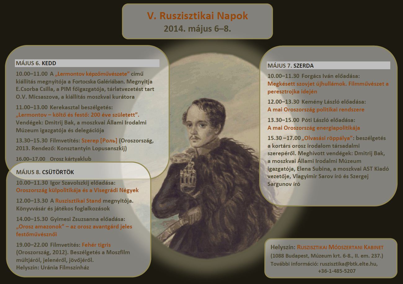 Az ELTE BTK hagyományos "Bölcsésznapok" című tavaszi programsorozatának részeként idén ötödik alkalommal kerülnek megrendezésre a Ruszisztikai Napok, 2014. május 6–8. között.