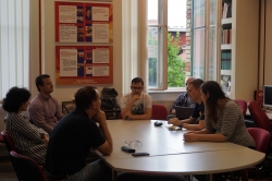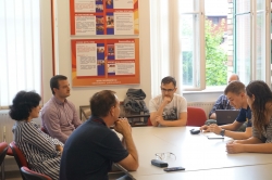 A Putyin játéka – Oroszország és a futball című könyv szerzőjét a ruszisztik amesterszak hallgatói, Kubik Zsombor és Koncsol András interjúvolták meg, de a népes közönség soraiból is több kérdés érkezett. A könyvnek az az alapkoncepciója, hogy a küszöbön álló futball világbajnokság apropóján az orosz futballon keresztül ismerjük meg különböző nézőpontokból magát Oroszországot is. A beszélgetés során rendkívül árnyalt és értő mini-elemzéseket hallhattunk a politikai-gazdasági hatalom és a foci viszonyáról, a dopping-botrányokról, a futball-huliganizmus nemzetközi vetületeiről, a világbajnokság aktuális kérdéseiről és még sok másról. A május végén megjelenő könyvet jó szívvel ajánljuk minden érdeklődőnek.