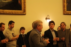 A zenei záróakkord után, a koccintás előtt Dr. Borsodi Csaba, az ELTE rektorhelyettese, a Történeti Intézet igazgatója zárta méltató és gratuláló szavakkal az ünnepséget.