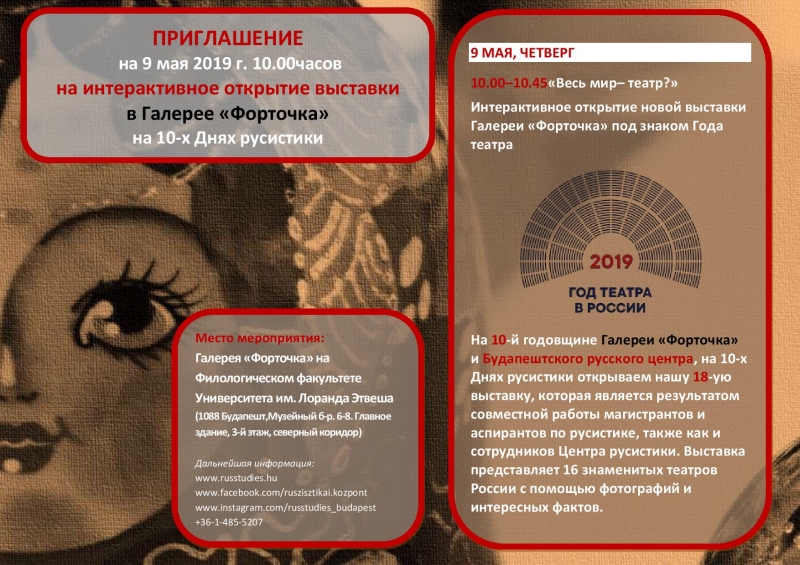 Приходите на все юбилейные программы 10-х Дней русистики 7–9 мая 2019 г! Вход свободный. Не пожалете!