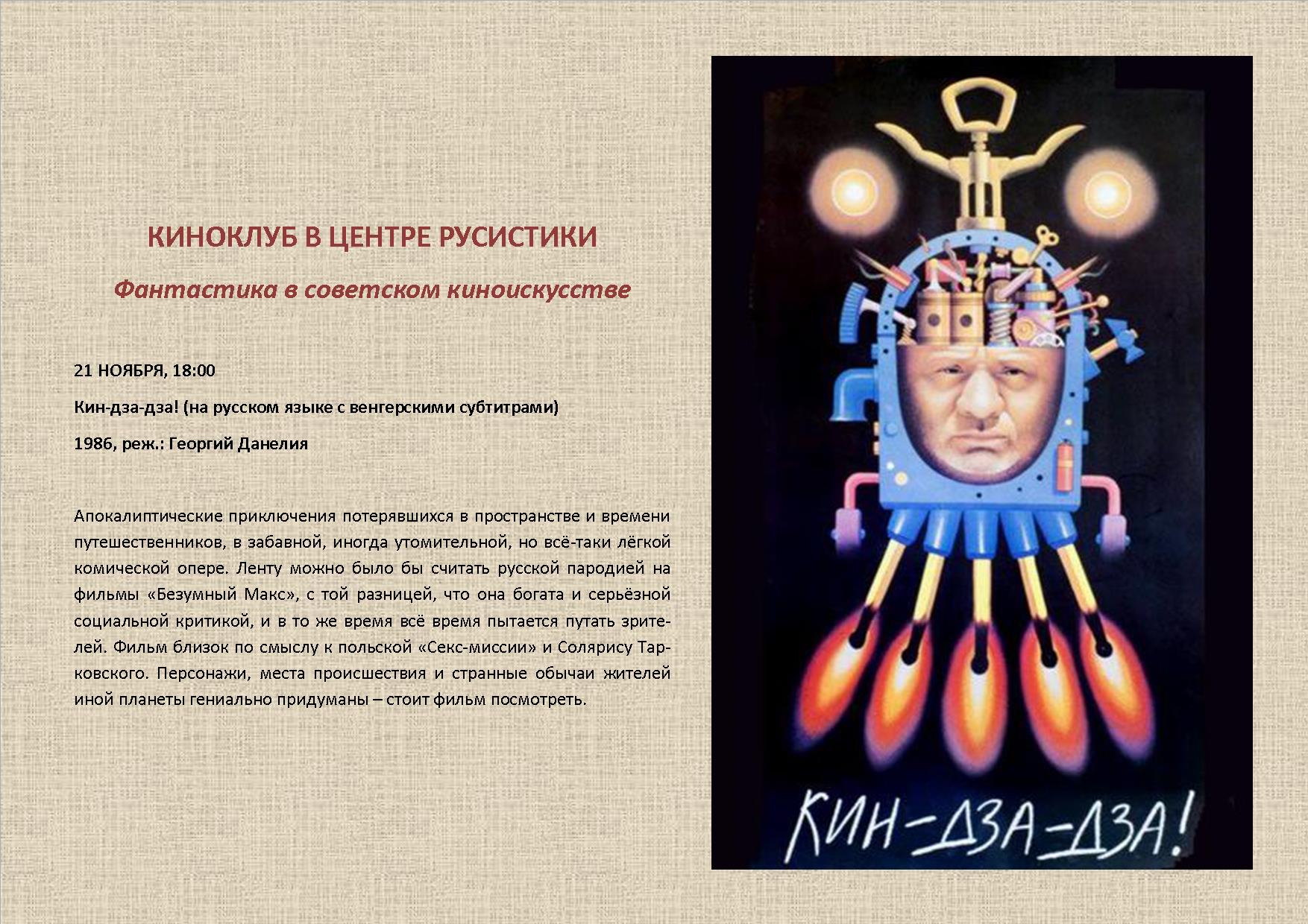 21 ноября 2018 г. в 18 часов состоится показ кинокомедии 1986 года "Кин-дза-дза" в Кабинете русистики. Приходите! Вход свободный.