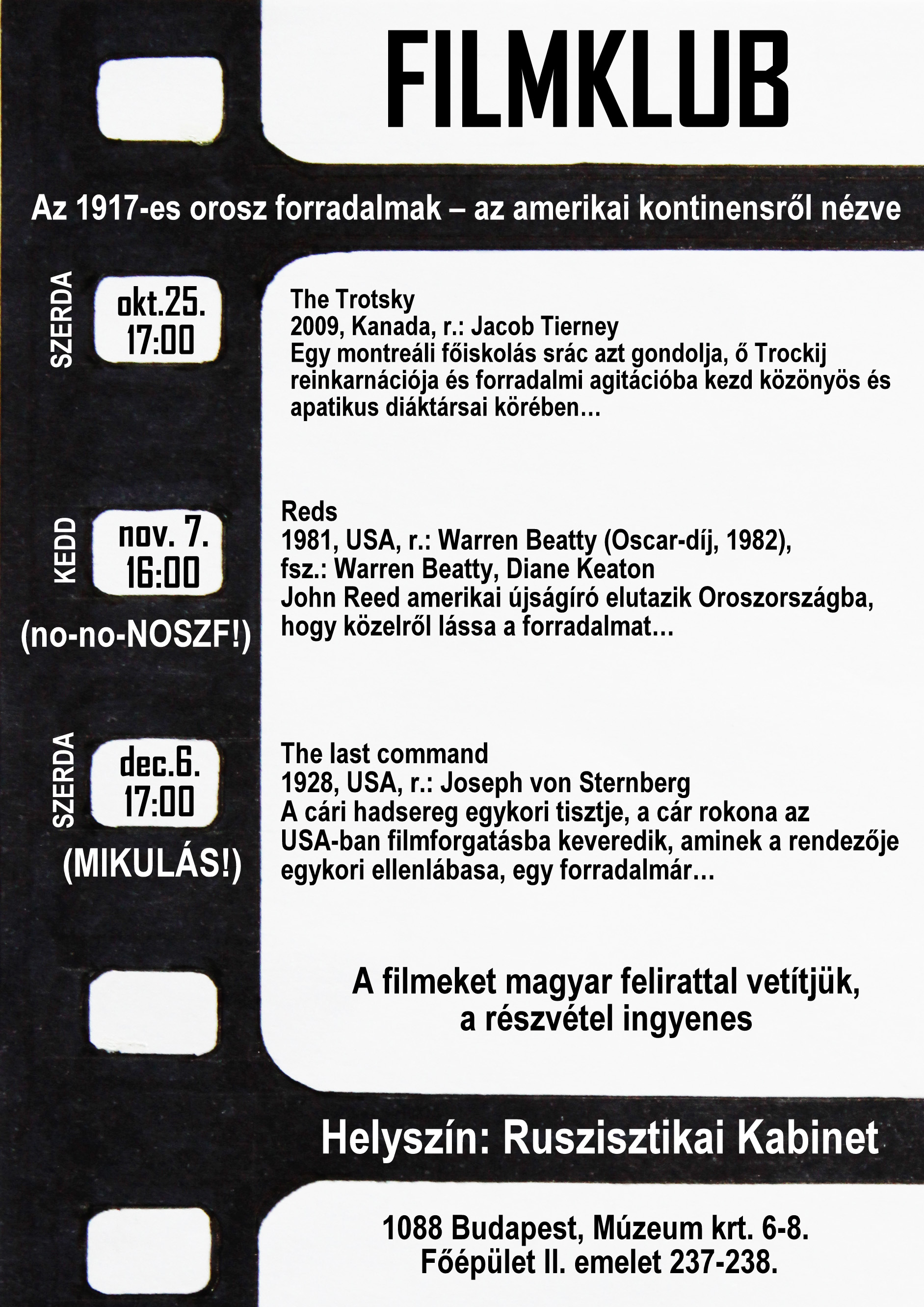 Filmklub a Ruszisztikán 1917 centenáriumában