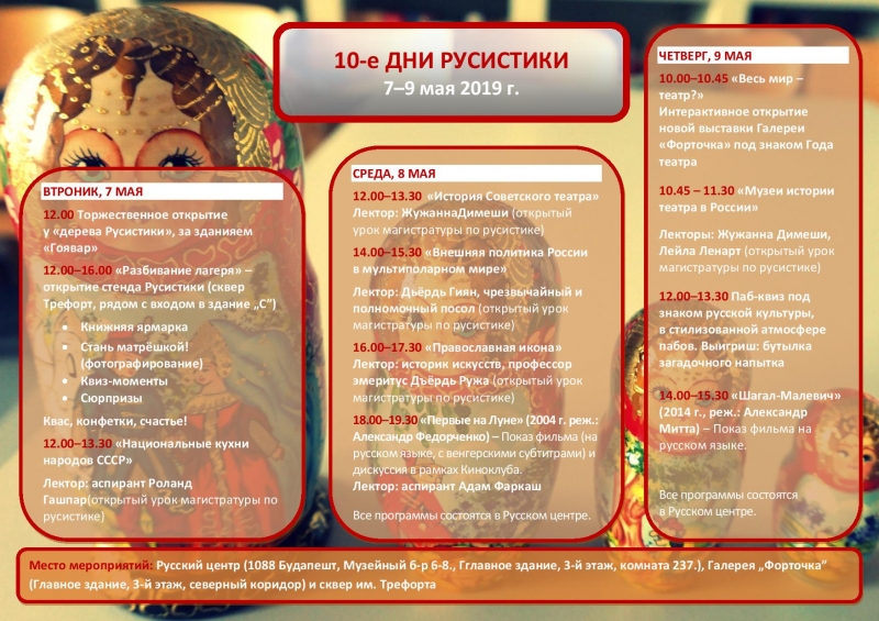 Приходите на все юбилейные программы 10-х Дней русистики 7–9 мая 2019 г! Вход свободный. Не пожалете!