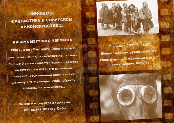 17 апреля 2019 г. в 18 часов состоится очередной кинопоказ Киноклуба Центра русистики. "Письма мертвого человека" является уникатом советского киноискусства. Вход свободный! Приходите, не пожалеете.