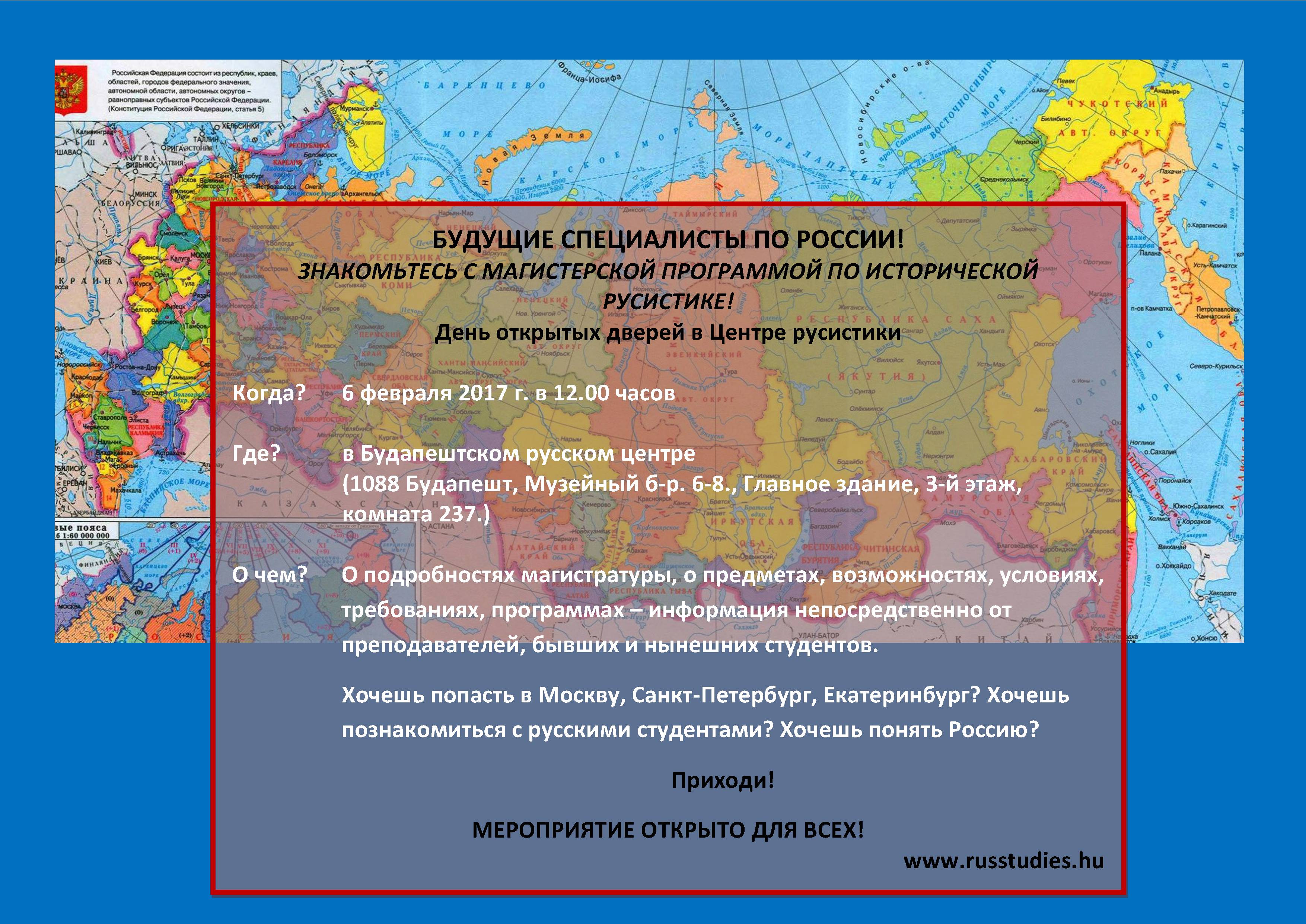6 февраля 2017 года в 12.00 часов устраивается День открытых дверей в Будапештском центре русистики.