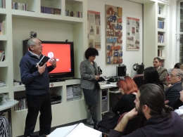 Во второй части мероприятия прошла нестандартная "дегустация" новейших книг по русистике. В свежайшей книжке Дюлы Свака «Что значит быть русским?» помещены цитаты из курсовых работ более 30-ти его бывших учеников. Несколько интереснейших из них было прочтено вслух, с надеждой на то, что их авторы, сидящие в рядах публики, узнают свои тогдашние мысли. И, несмотря на некую неуверенность, проявившуюся среди авторов, номер удался. Профессор Тамаш Краус говорил о том, что достоинством книги он считает то, что она не стремится дать ответ на этот с виду совсем простой, но практически не поддающийся ответу вопрос (Что значит быть русским?), а направлена на то, чтобы столкнуть читателя с дальнейшими вопросами и проблемами. Автор ставит в один ряд концепции крупнейших историков, результаты общественных опросов, мнения студентов бакалавриата и магистратуры, чрезвычайно точно отразив состав тех, кто отвечает за формирование и артикуляцию мнения. Публикуя отрывок из курсовой работы Адама Фаркаша, эта книга также образует мост между студенческими и исследовательскими стациями. И еще один агрумент в пользу того, что в университете стоит усердно работать – хорошие курсовые работы могут иметь неожиданный результат в виде публикации.