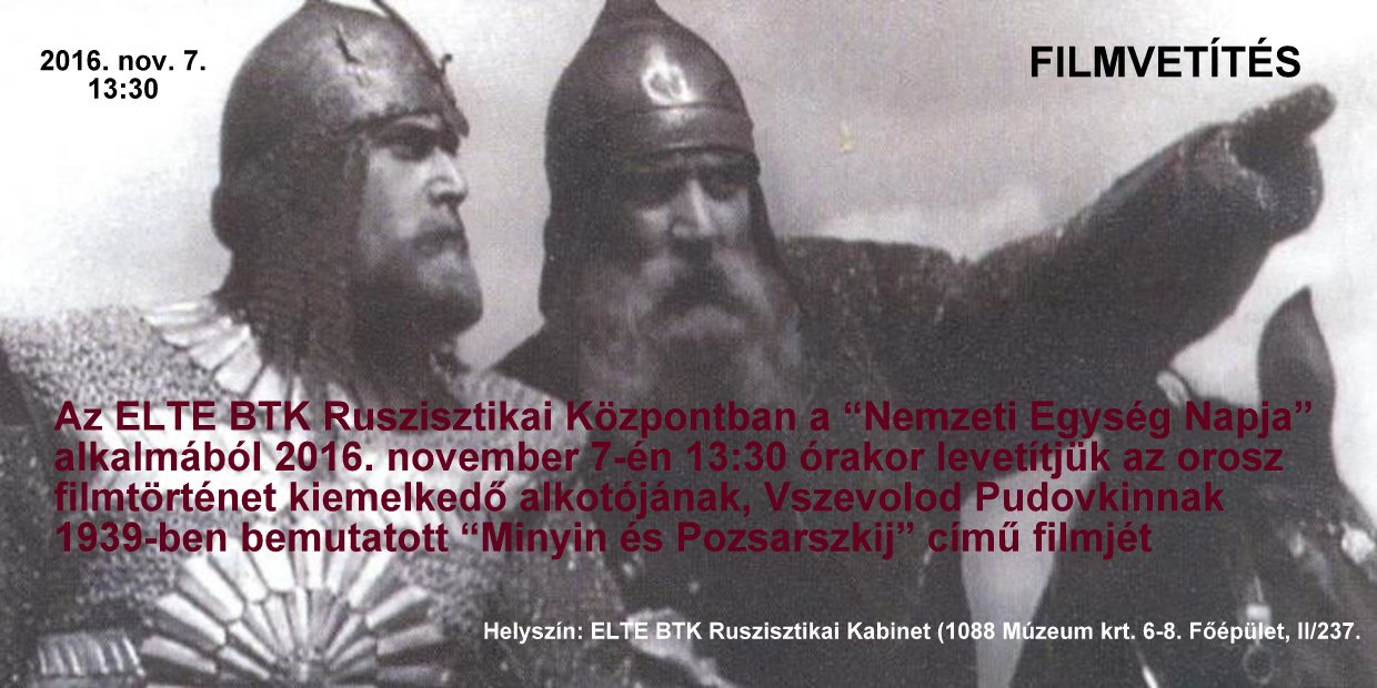 2016. november 7-én filmvetítéssel köszöntjük november 4-ét, az Orosz Egység Napját, amely 2005 óta nemzeti ünnep Oroszországban.