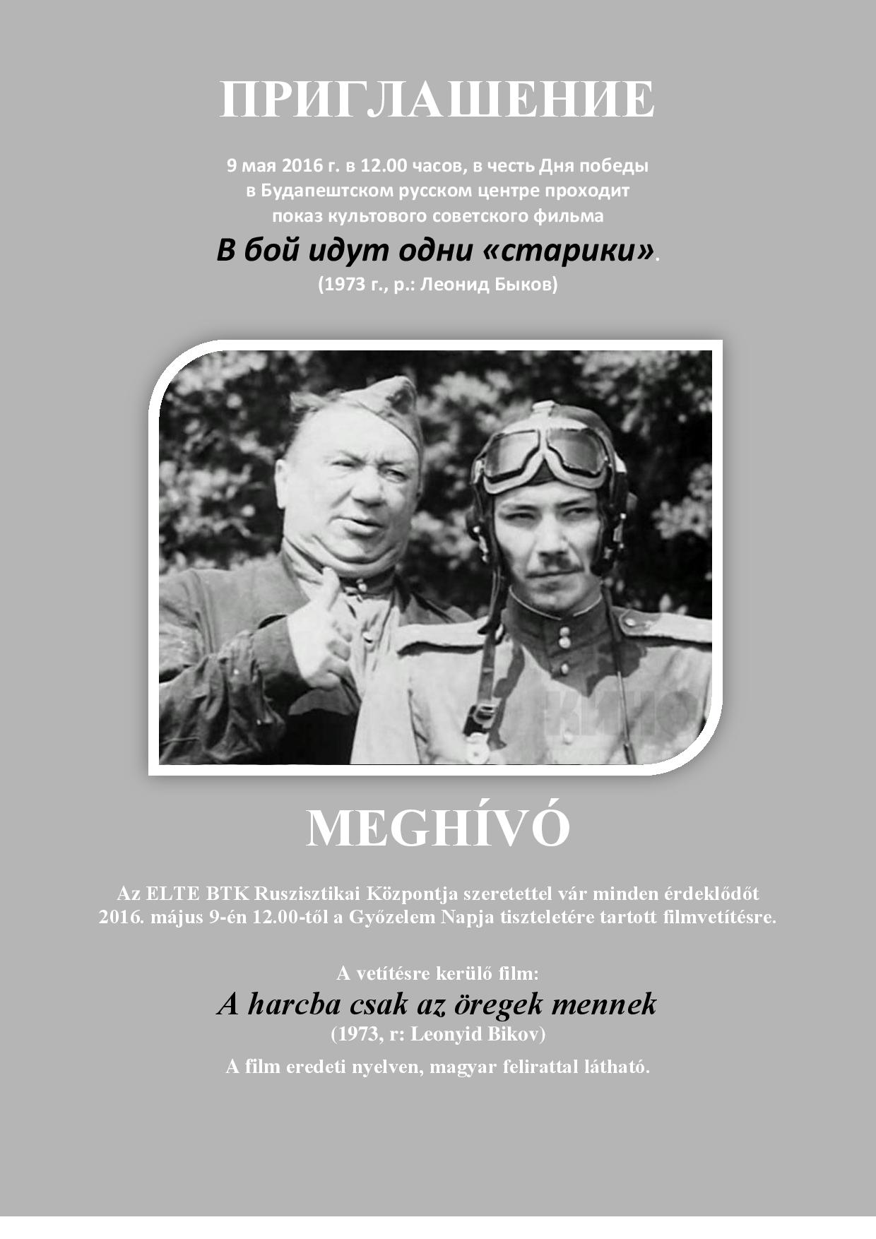 2016. május 9-én 12 órától filmvetítéssel emlékezik meg a Győzelem Napjáról a Ruszisztikai Módszertani Kabinet és Könyvtár.