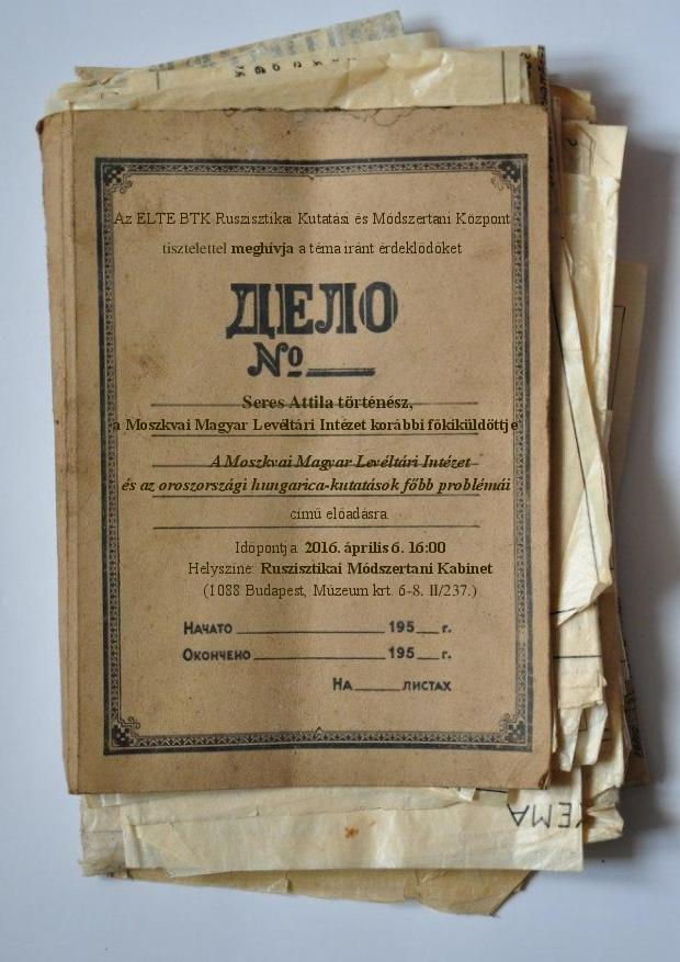 2016. április 6-án, szerdán 16 órakor Dr. Seres Attila történész, a Moszkvai Magyar Levéltári Intézet korábbi vezetője előadást tart az oroszországi hungarica-kutatásokról. Minden érdeklődőt várunk a Ruszisztikai Központban.
