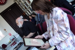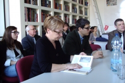 A kiállítás megnyitót Olga Micsaszova tárlatvezetése követte. A mérethű reprodukciók ugyan nem érnek fel az eredeti alkotásokkal, mégis magukkal ragadják a nézőt, különösen, ha keletkezésükről olyan szakértelemmel és odaadással szól valaki, ahogyan Olga Micsaszova tette. A kiállított munkák érdekessége, hogy Lermontov nem illusztrációként készítette őket saját műveihez, hanem az eredeti alkotói impulzusokat párhuzamosan öltötte szavakba és képekbe, grafikákba, mintegy vizuális naplót vezetve mindarról, ami művészként foglalkoztatta. A tárlatvezetés után kerekasztal beszélgetésre került sor a Ruszisztikai Kabinetben. Dmitrij Bak, a moszkvai Állami Irodalmi Múzeum igazgatója indította a beszélgetést. Körvonalazta Lermontov jelentőségét és máig tartó hatását az orosz kultúrában. Olga Micsaszova szólt a gyűjtemény keletkezéséről és feldolgozásának további izgalmas kérdéseiről. Magyar részről Ruzsa György professzor szólalt fel, meglepetést tartogatva táskájában. Lermontov kapcsán Magyarországon nem lehet nem megemlíteni Zichy Mihály nevét, aki Lermontov „Démon” című poémájához korszakalkotó jelentőségű illusztráció sorozatot készített. A szenzáció az volt – az orosz kollégák számára is –, hogy Ruzsa professzor elhozta magángyűjteményének egy kivételes darabját: egy eredeti Zichy-grafikát, amit a Lermontov-illusztrációihoz készített tanulmányként. A magyar Lermontov-kutatást képviselte továbbá Gyöngyösi Mária, az ELTE BTK Orosz Nyelv és Irodalom Tanszékének oktatója, aki „A démoni elem a költészetben és a festészetben: Lermontov, Vrubel, Blok” címmel tartott nagy érdeklődést kiváltó előadást. A kerekasztal beszélgetést Gyimesi Zsuzsanna vezette.  |