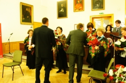 A hivatalos rész Szvák Gyula professzor hagyományos köszöntő beszédével indult, amelynek alaphangja pozitív és örömteli volt, hiszen a megnehezedett körülmények, beszűkült források ellenére is intenzív, érdemi és termékeny munka jellemezte 2012-ben a hazai ruszisztikát. (Ennek papír alapú „eredményeibe” az ünnepség végén bele is lehetett lapozni. Több mint tíz új szakirodalmi mű jelent meg a Russica Pannonicana gondozásában egy év alatt.) Azonban az igazi optimizmusra az ad okot, hogy láthatáron van a szakmai utánpótlás. Az idei harmadik ruszisztika mesterszakos évfolyam is kiválónak ígérkezik, a doktori programon pedig már hat komoly ifjú kutató tanul.