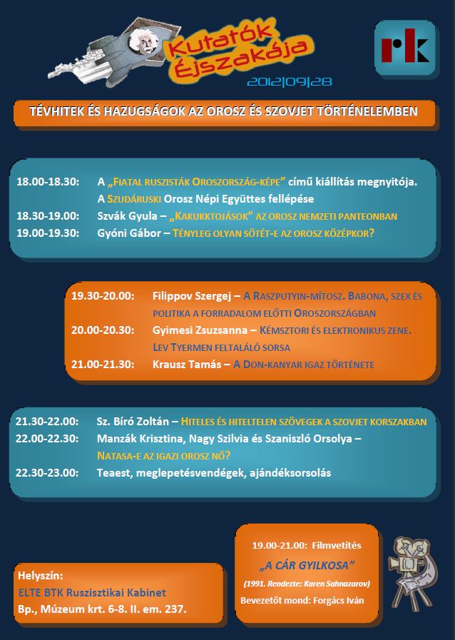 Nyilván már hallottatok róla, hogy a Ruszisztikai Központban mindig nagyszerű programok vannak a Kutatók Éjszakáján. Idén a programokat arra a kérdésre fűztük fel, hogy Hallottál már róla? Ha igen, gyere el, ha nem, akkor pedig azért gyere el szeptember 27-én! | |