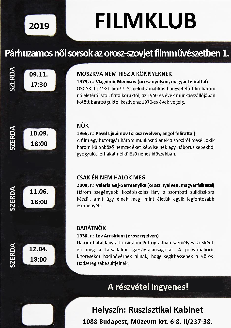 Vlagyimir Menysov Oscar-díjas alkotása jó választás volt a szeptemberi ruszisztikai filmklub évadnyitásához. Mindenkit elvarázsolt a film – akár először, akár másodszor, akár sokadszor látta.